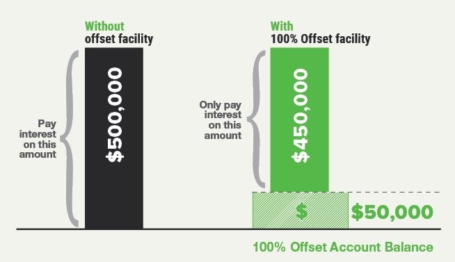 For example, if you have a home loan of $500,000 with $50,000 in an offset account, you will only be charged interest on the remaining $450,000.